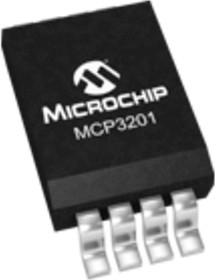 MCP3201-BI/SN, 12-бит АЦП с SPI интерфейсом [SO-8]The MCP3201-BI/SN is a 12-bit Analogue-to-Digital Converter with on-board sample and hold circuitry. Combines high performance and low power consumption. The MCP3201 features a successive approximation register (SAR) architecture and an industry-standard SPI serial interface, allowing 12-bit ADC capability to be added to any PIC® microcontroller. The MCP3201 features 100k samples/second, 1 input channel, low power consumption (5nA typical standby, 400µA maximum. active). Applications for the MCP3201 includes data acquisition, multi-channel data loggers and robotics. The device provides a single pseudo-differential input. Differential non-linearity (DNL) is specified at ±1 LSB and integral non-linearity (INL) is offered in ±1 LSB (MCP3201-B) versions. Communication with the device is done using a simple serial interface compatible with the SPI protocol.